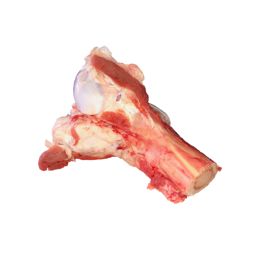 Fresh beef marrow bone tubes cut in-house from locally processed beef.